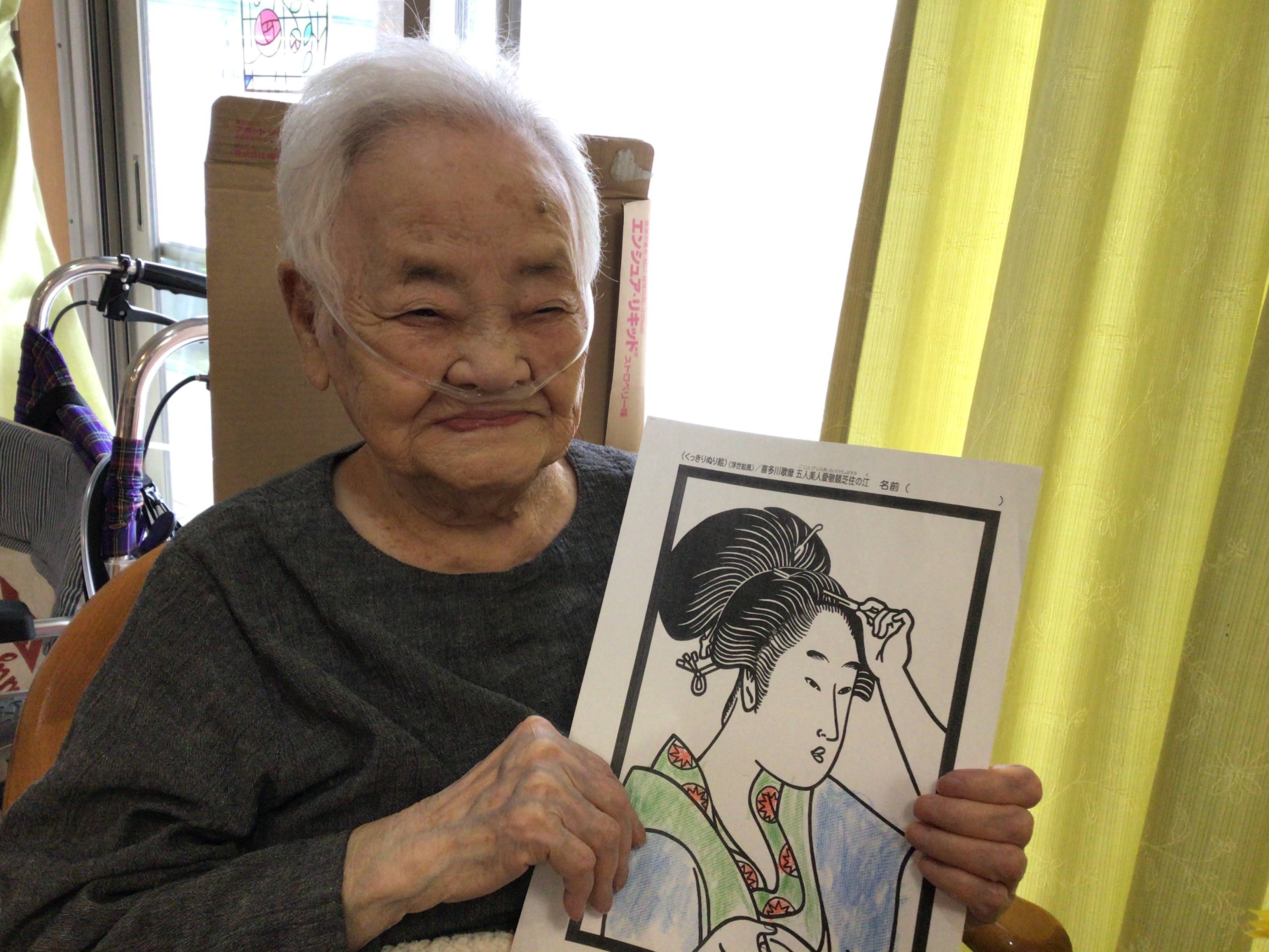 この日は、塗り絵をされる方や、テレビを鑑賞される方、他のユニットに散歩に行かれる方など、