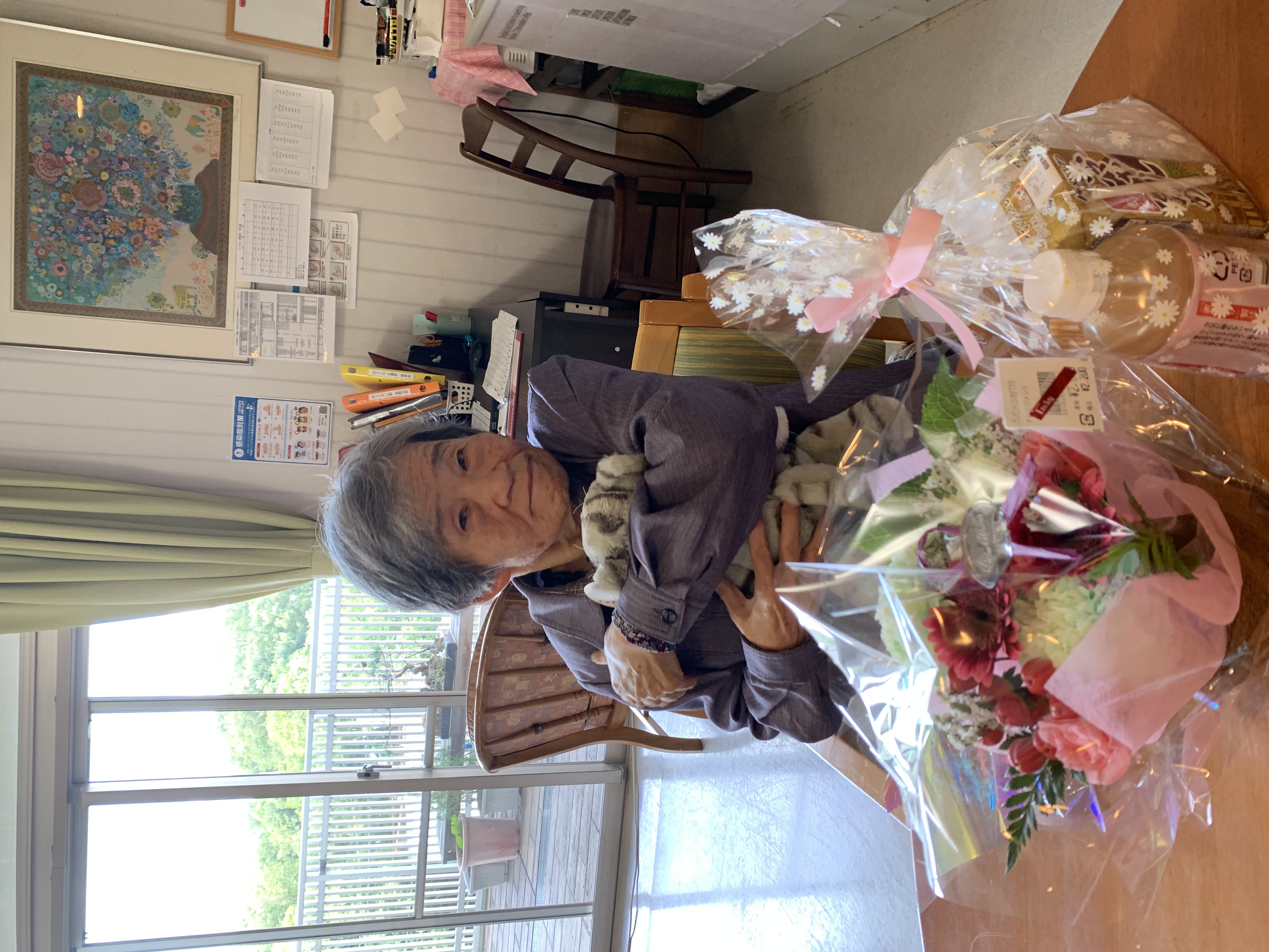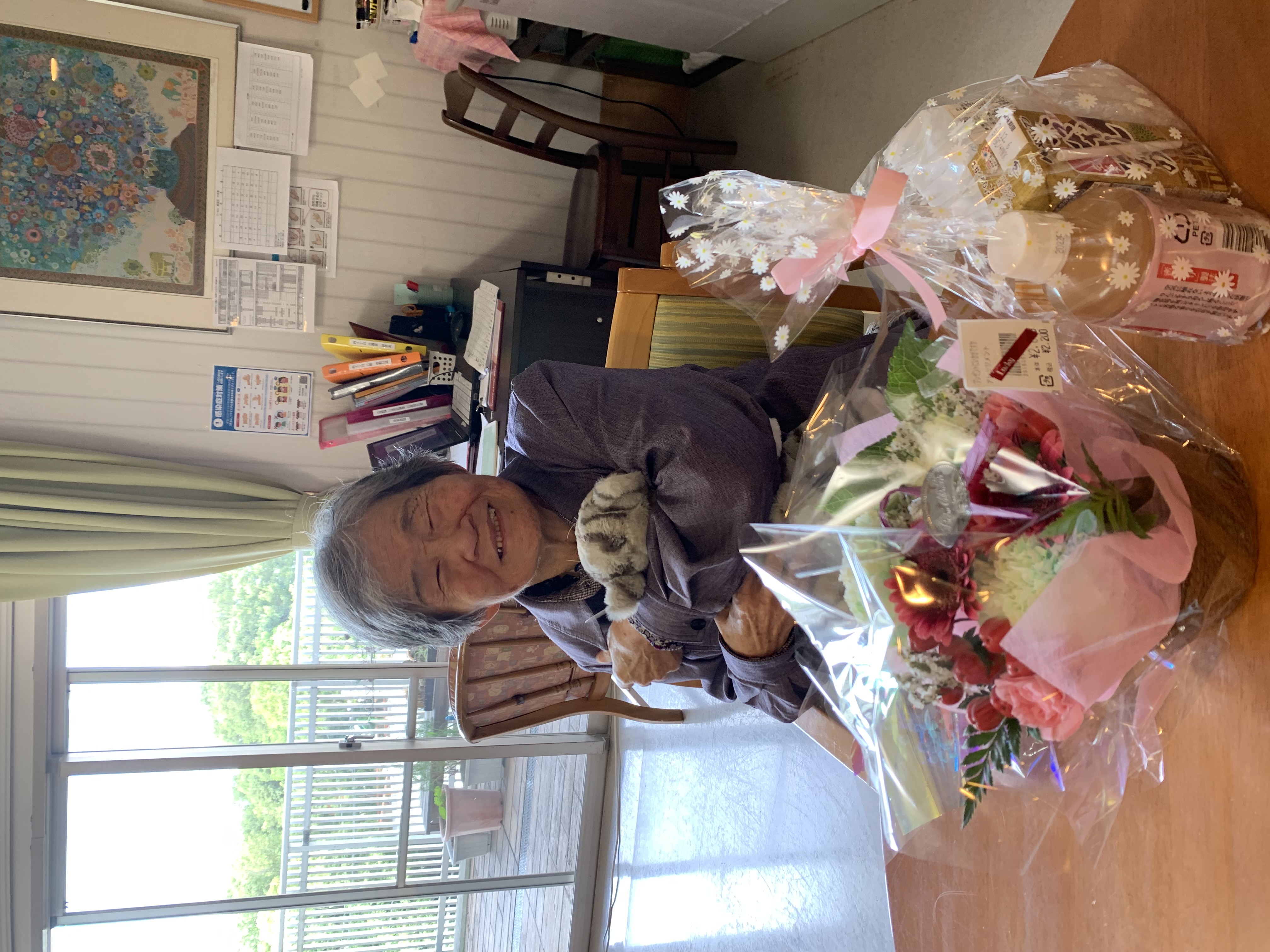 ご家族からのお花やお菓子のプレゼントも大喜びされていました!!