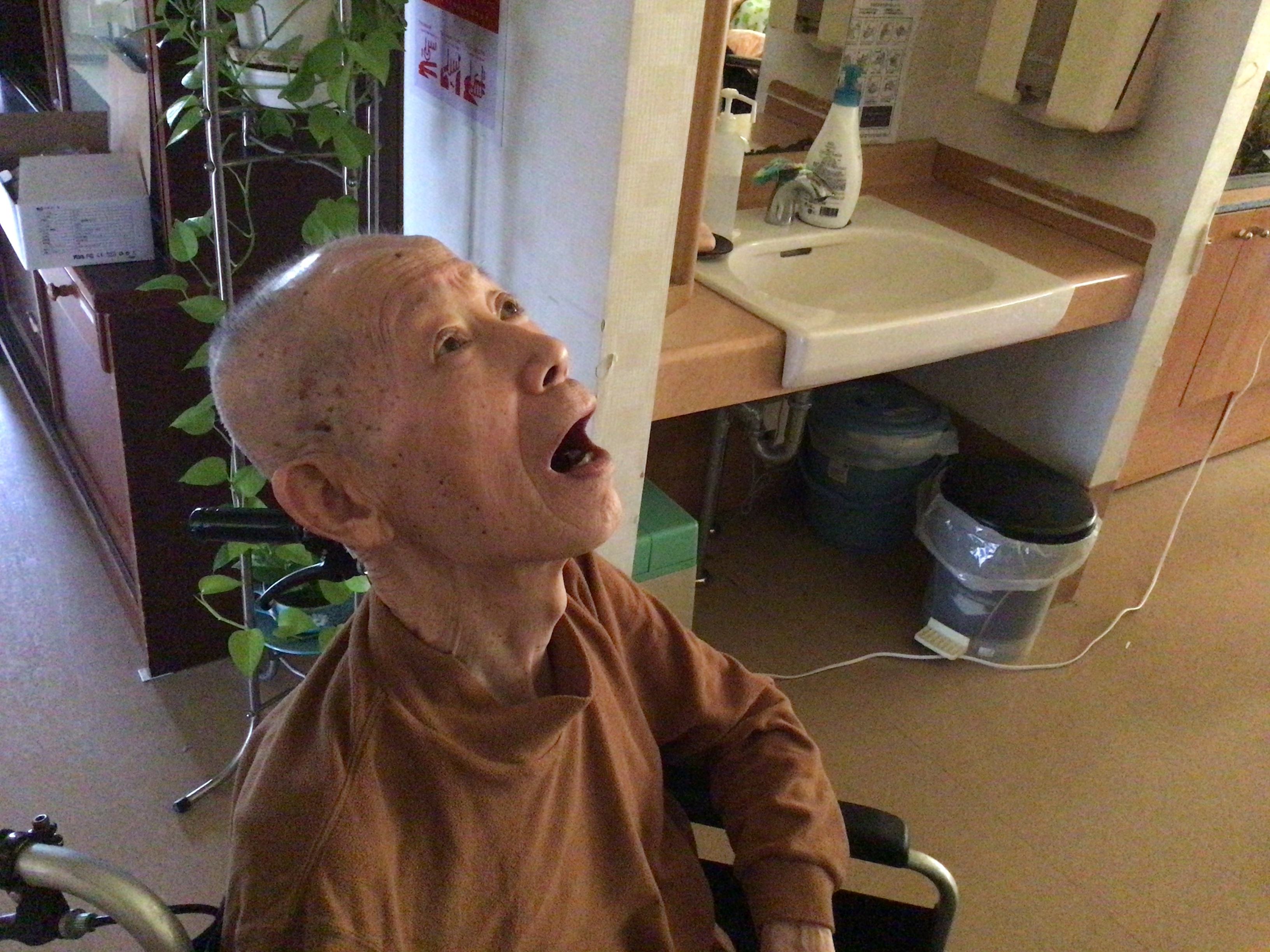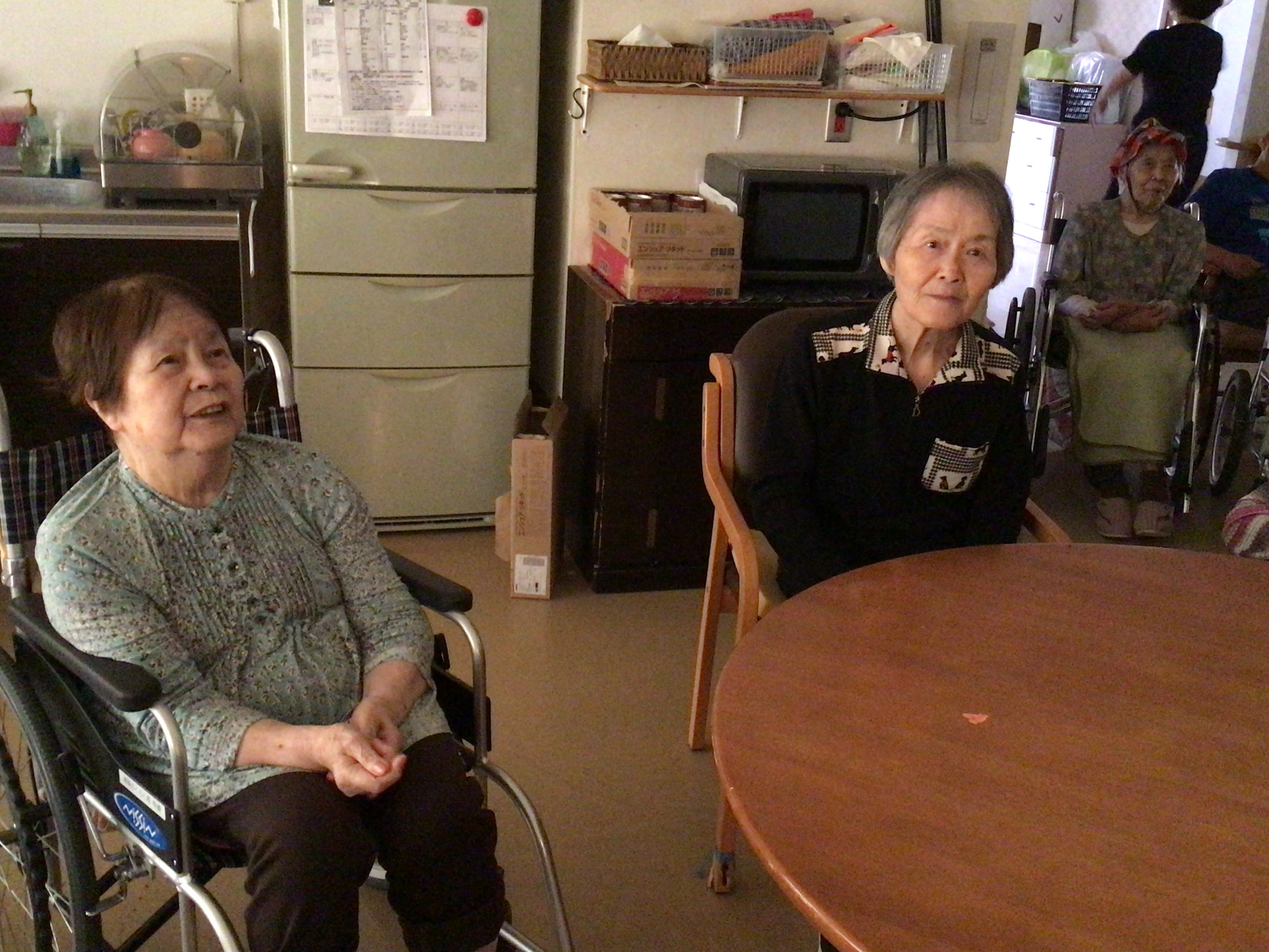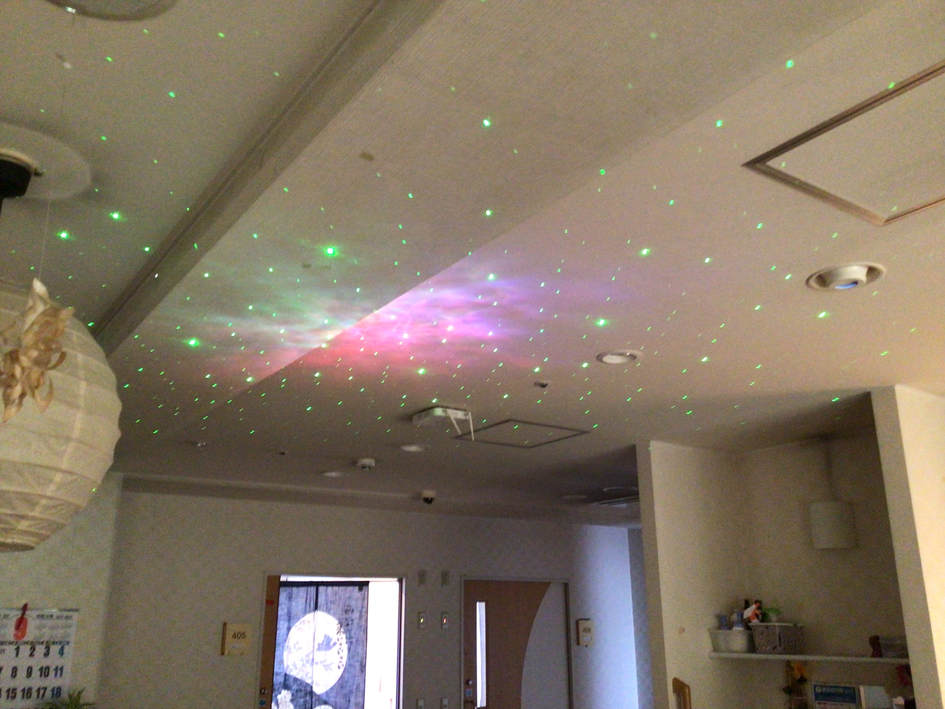 1枚、やらせの表情の写真もありますが(笑) 皆様、天井を見上げたり、壁を見たりして綺麗だと仰って下さいました。 他のユニットからも、見学に来られました。 同時に、長寿祝いと誕生日会も行いました。 その様子は次回のブログでお伝えします。