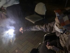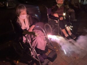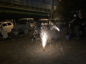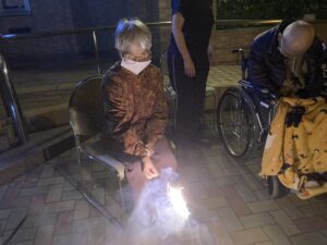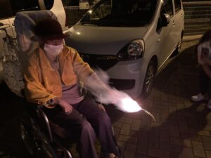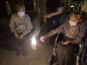 季節外れですが、皆さんと苑の玄関前で花火大会開催されました?