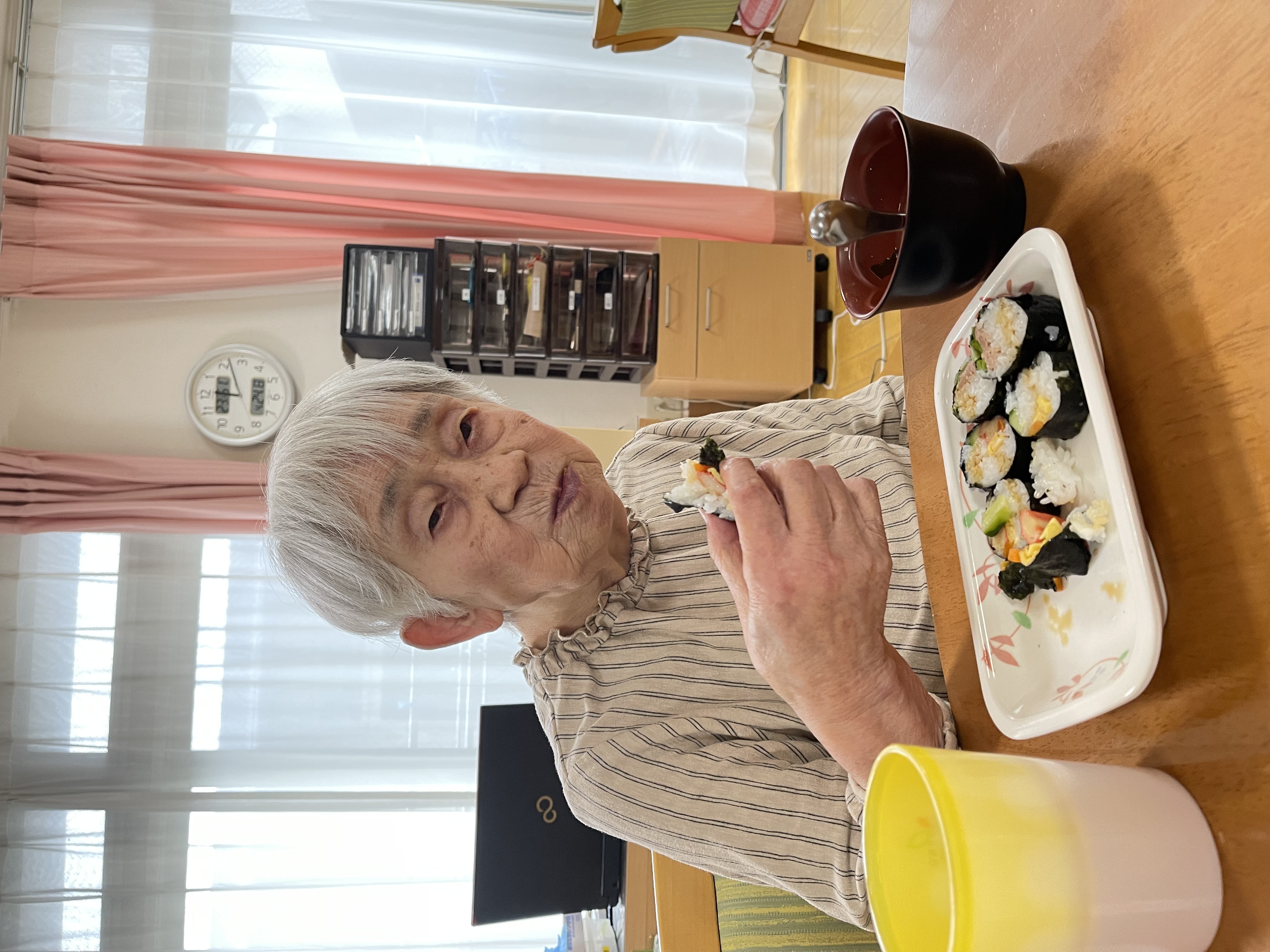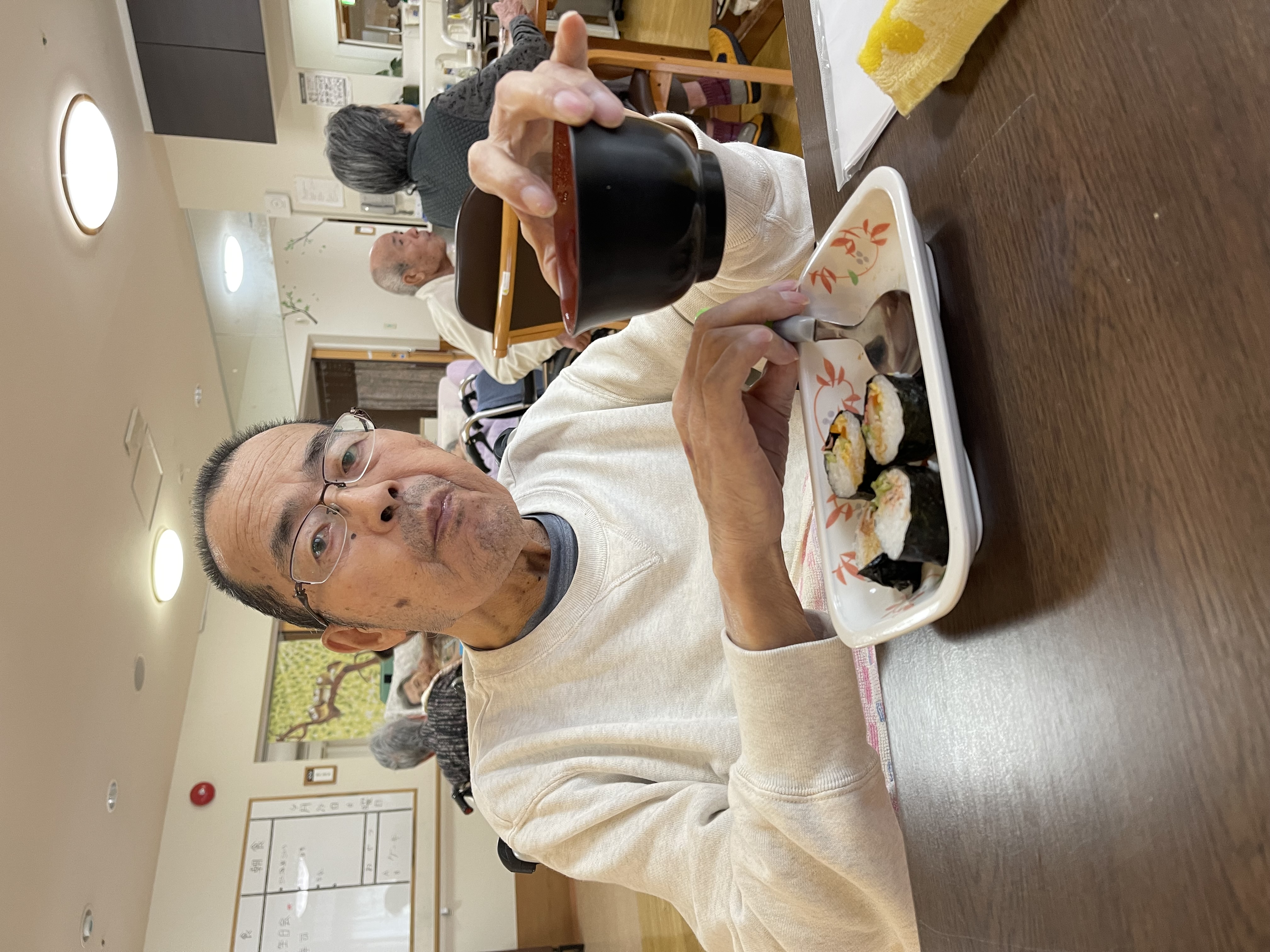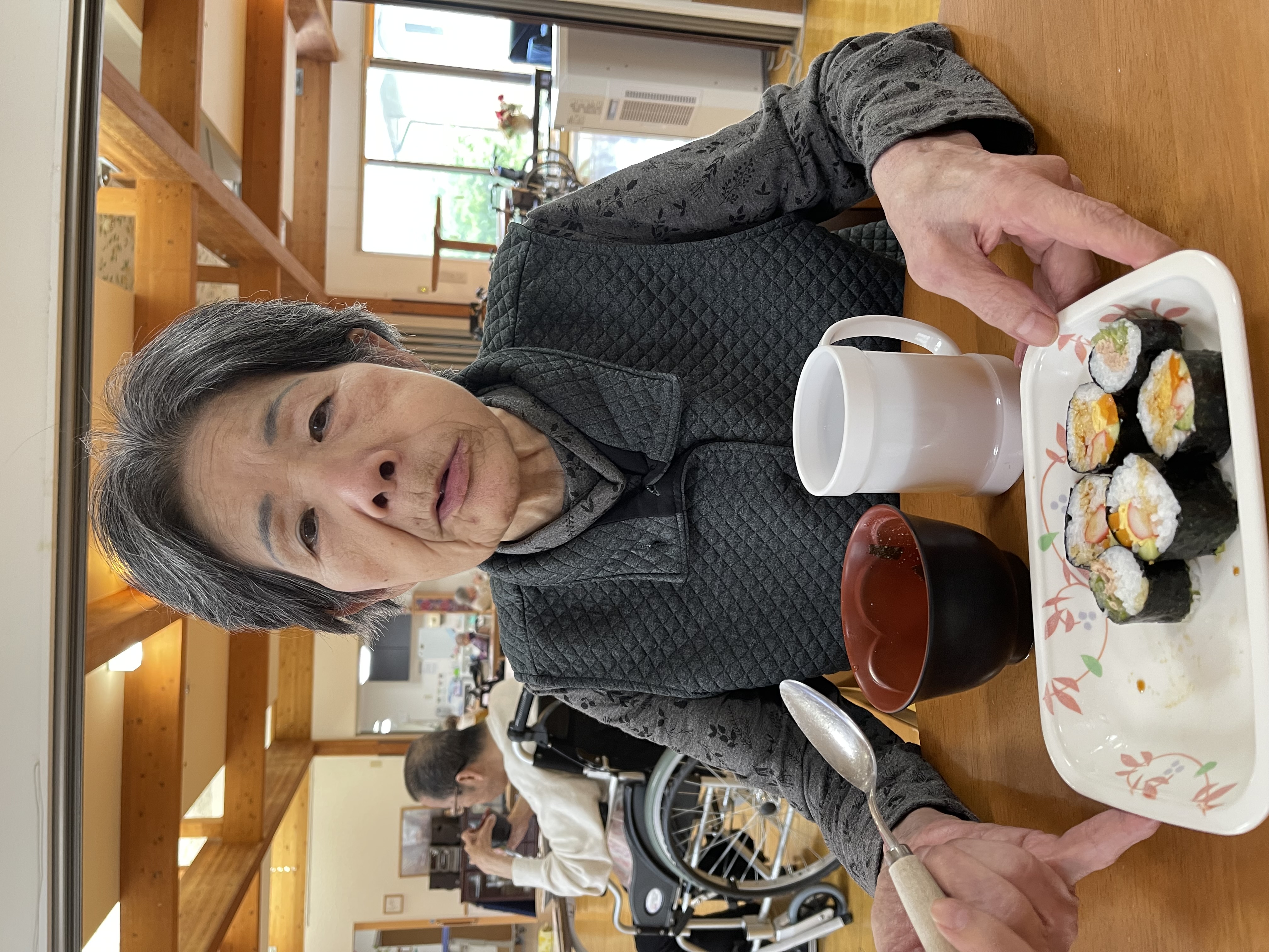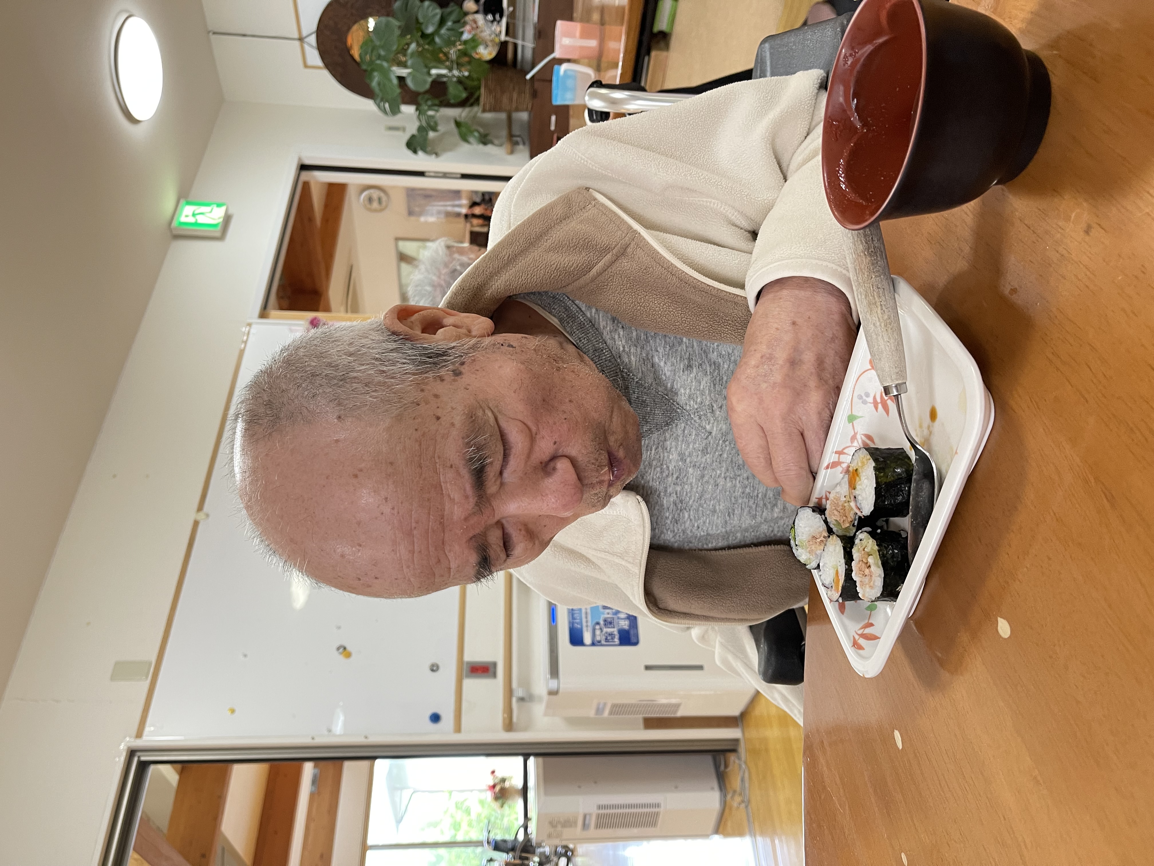 4/24に4月の誕生日者1名のお祝いを兼ねた巻きずし行事を