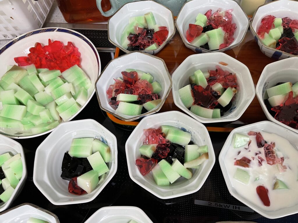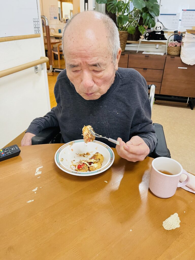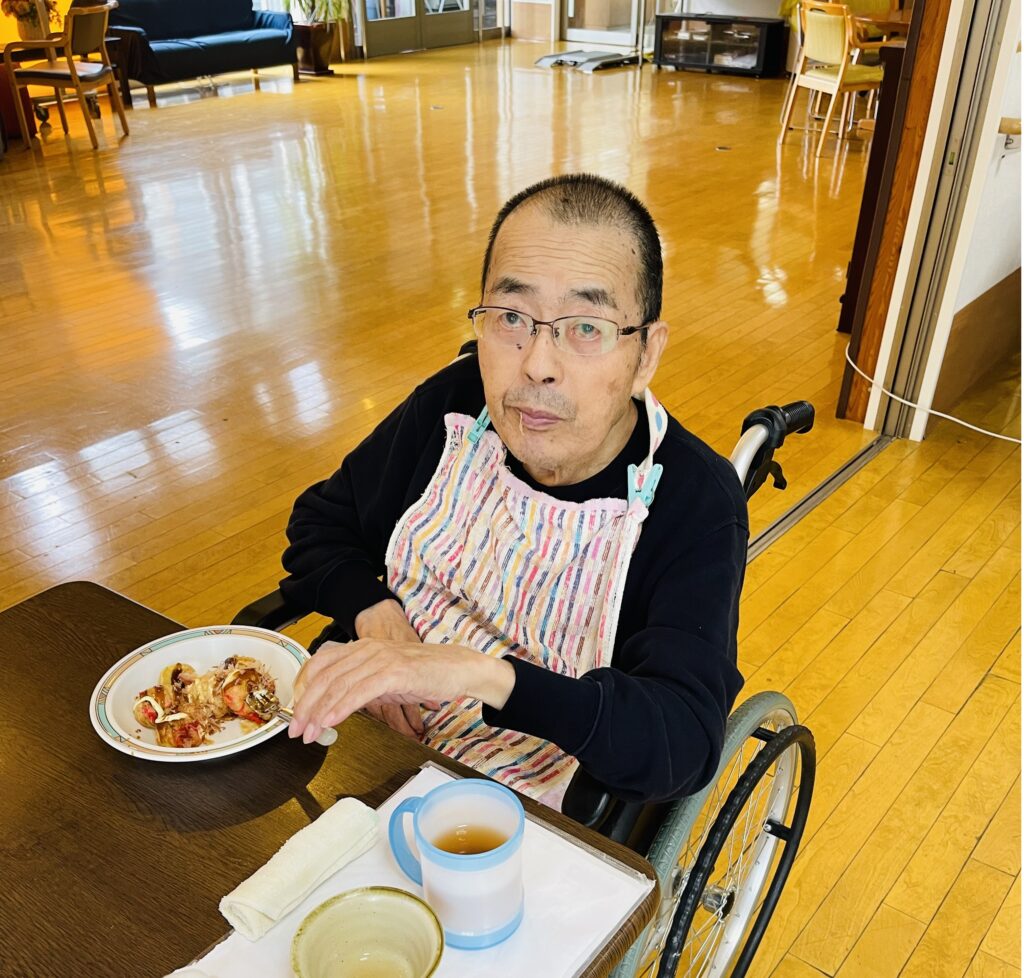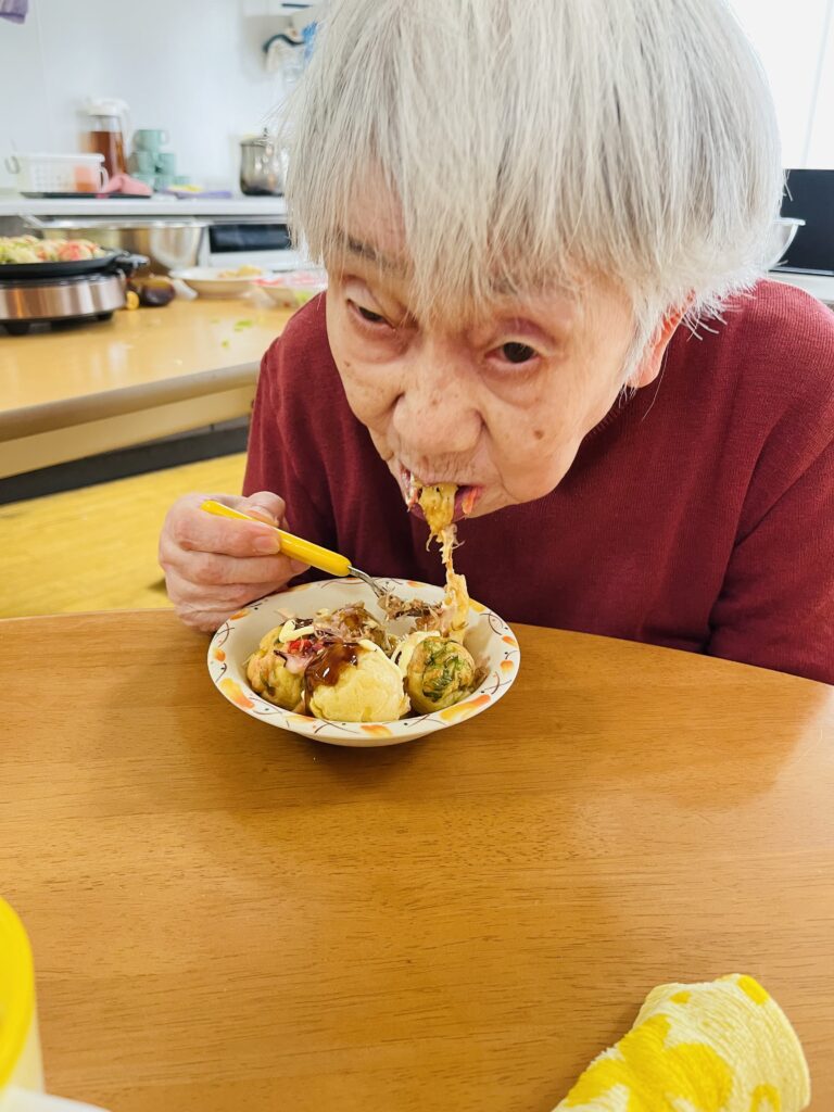 昼食はたこ焼きをしておやつに手作りゼリーを食べて頂きました。