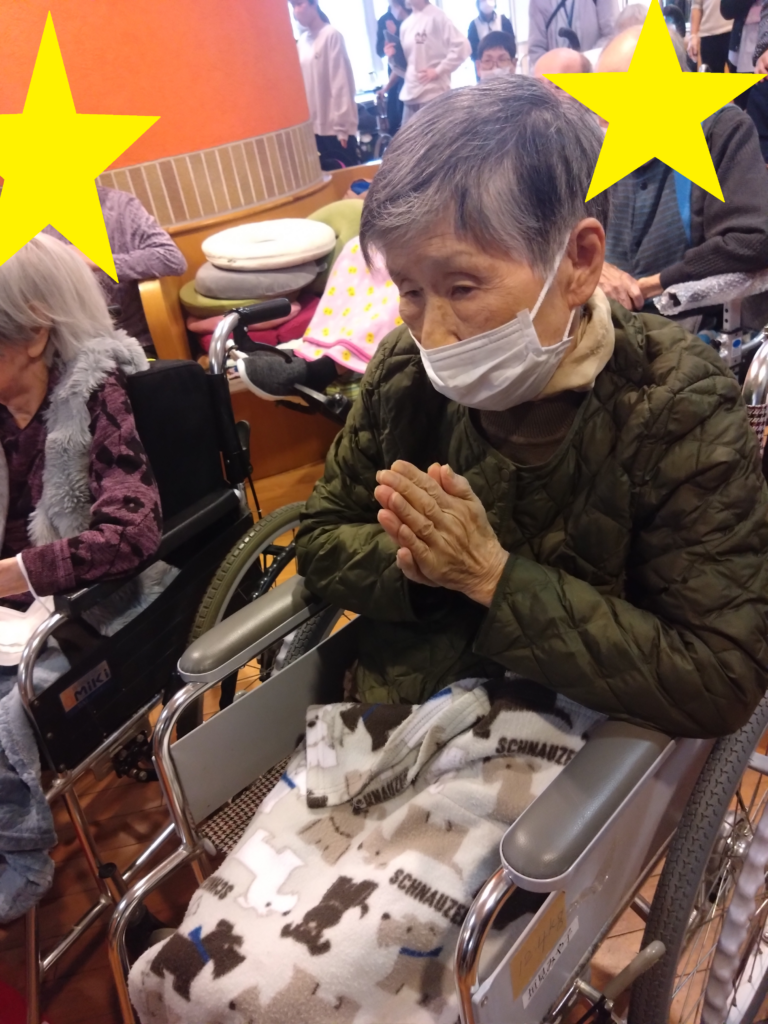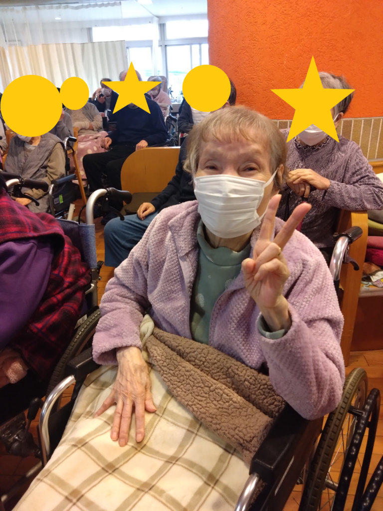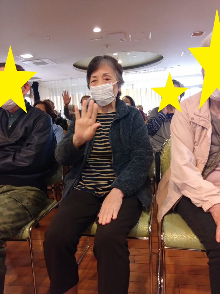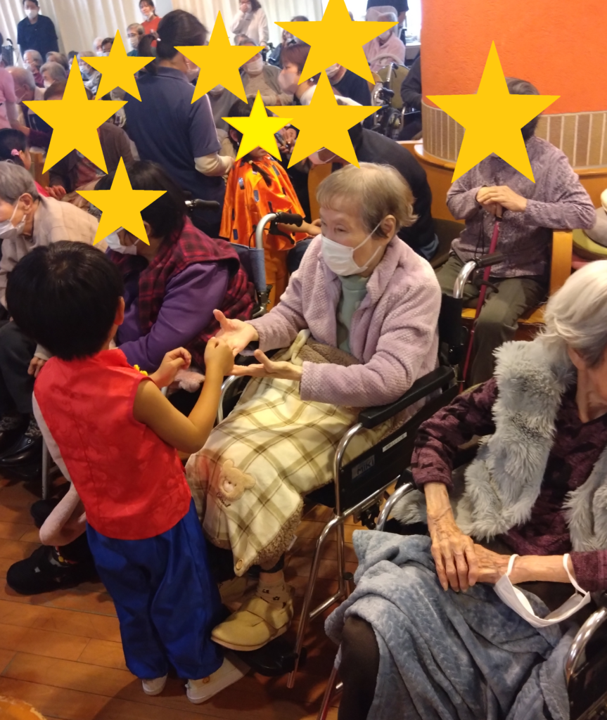 園児たちが、ご利用者の前で一緒に手遊びをしてくれたり、お菓子のプレゼントをしてくれました!