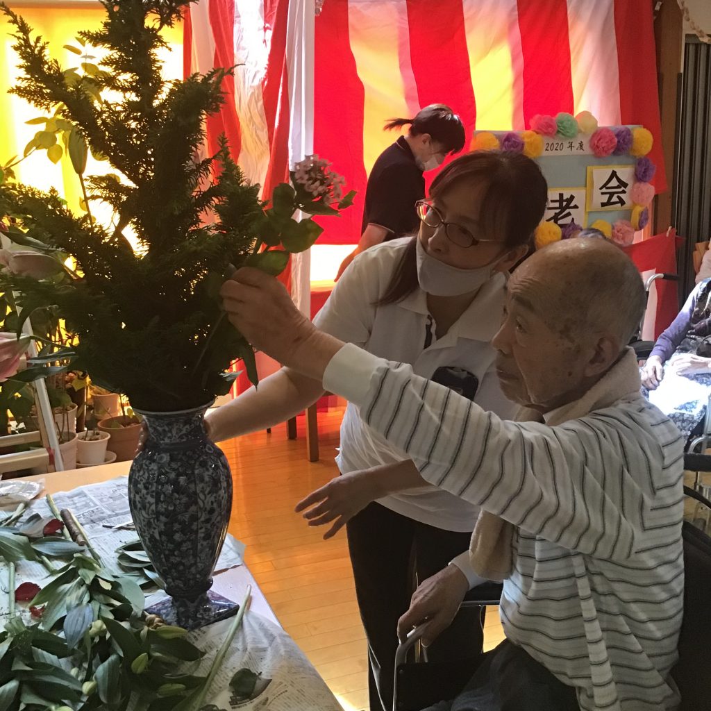 生け花にも挑戦。男性も真剣なお顔です。