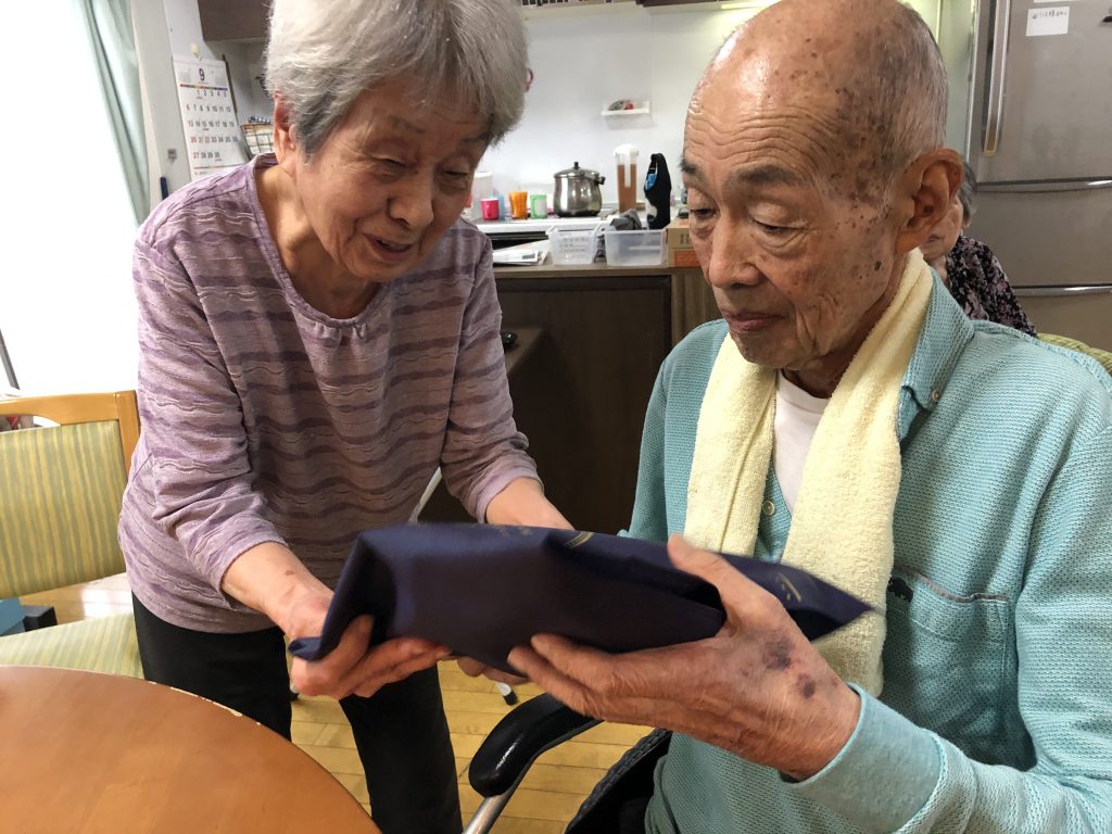 お隣の席の利用者様が代表してプレゼントをお渡しすると、少し照れながら受け取っておられました。
