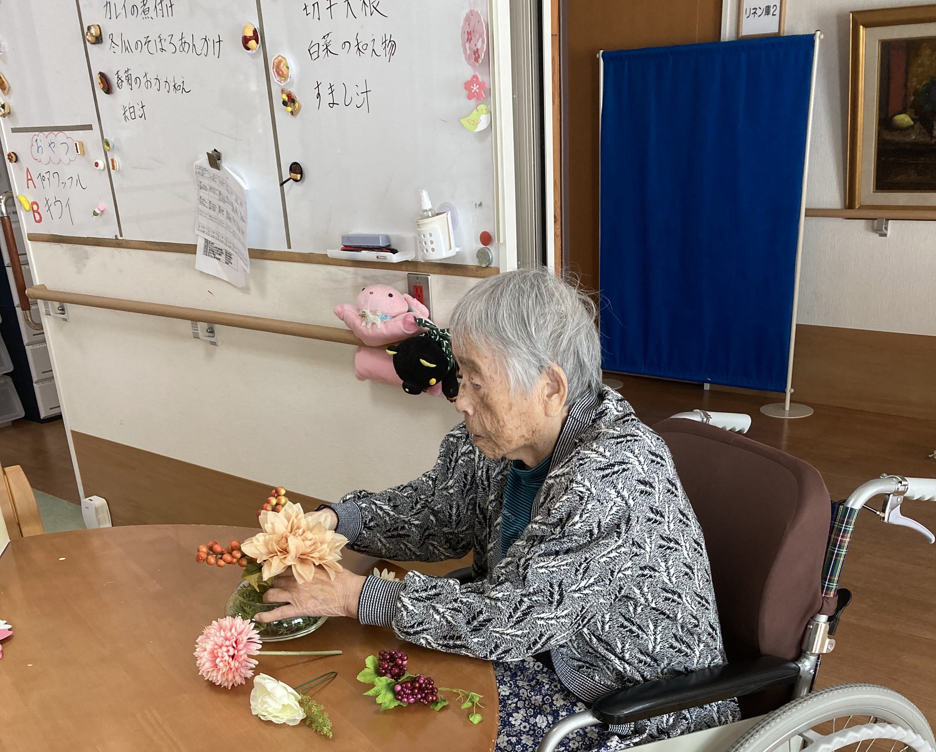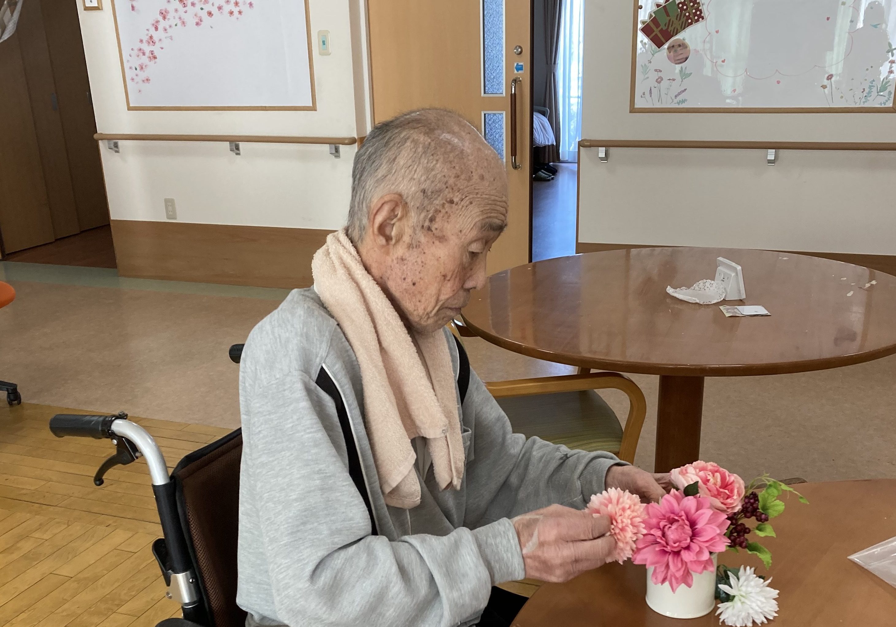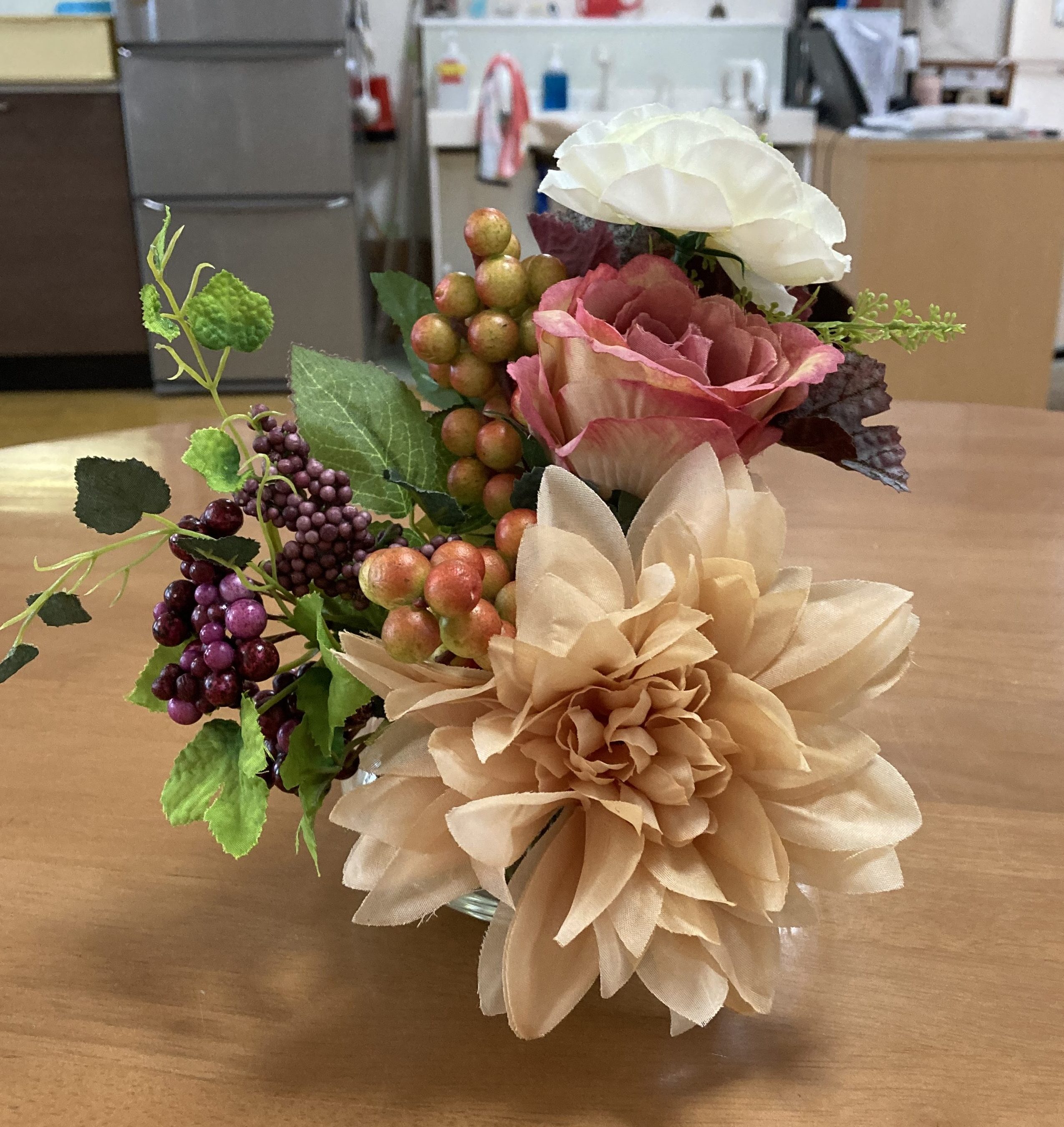 ほぼ毎日のようにテーブルの花を挿し替えて整えて下さる利用者様にお願いし、