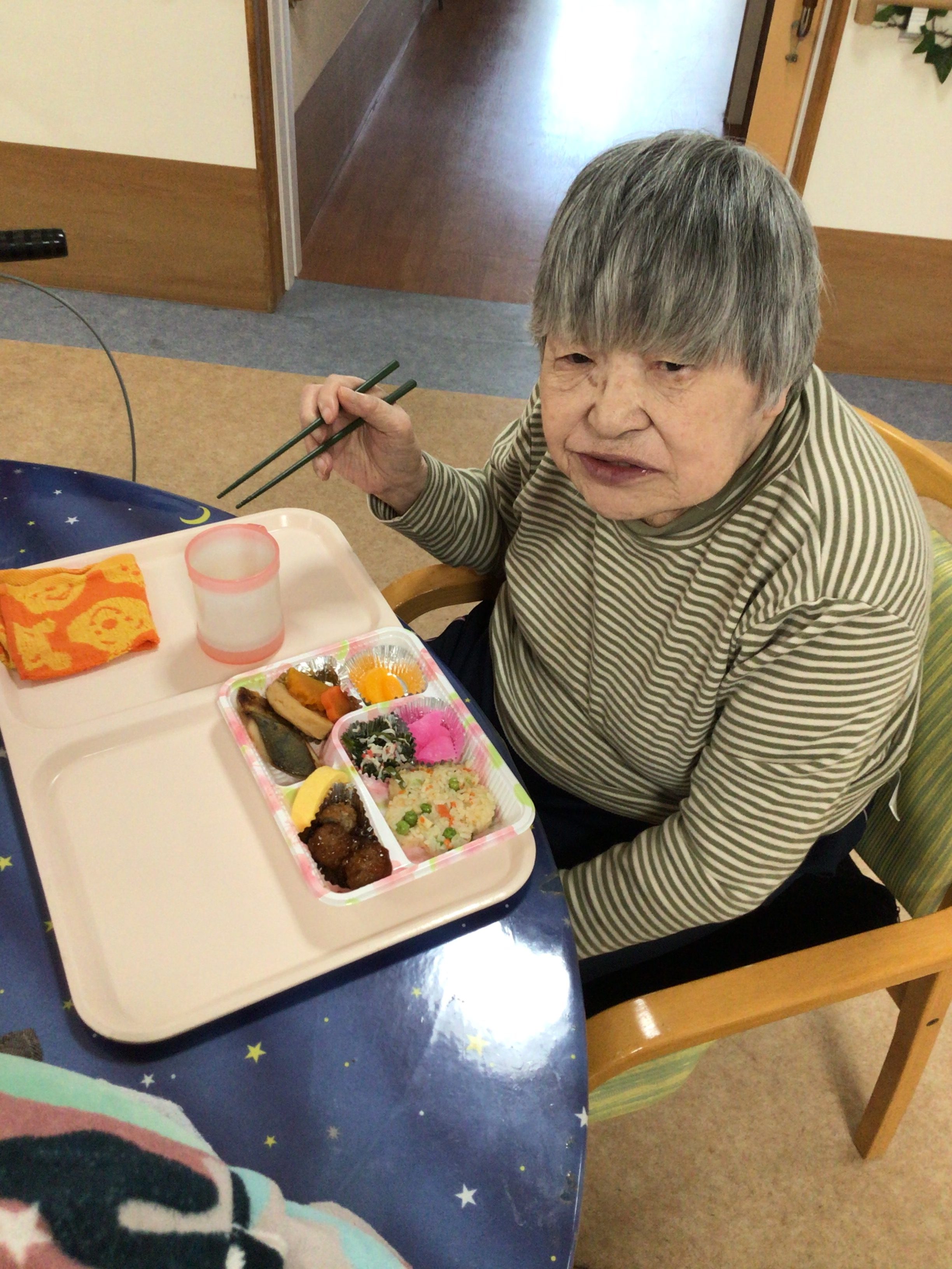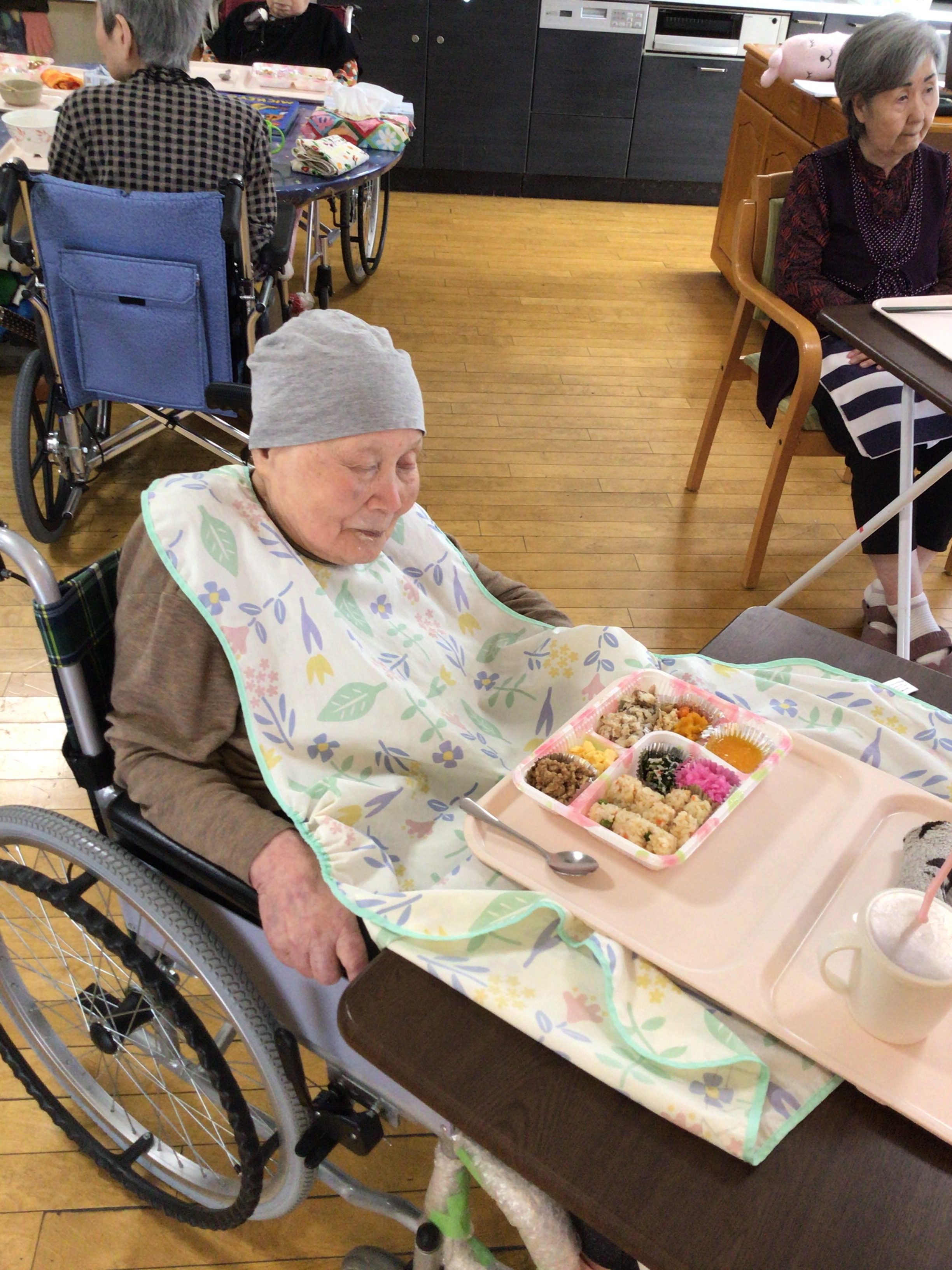 苑内ではありますが、お花見弁当と手作りのさくらの木でお花見をしました。