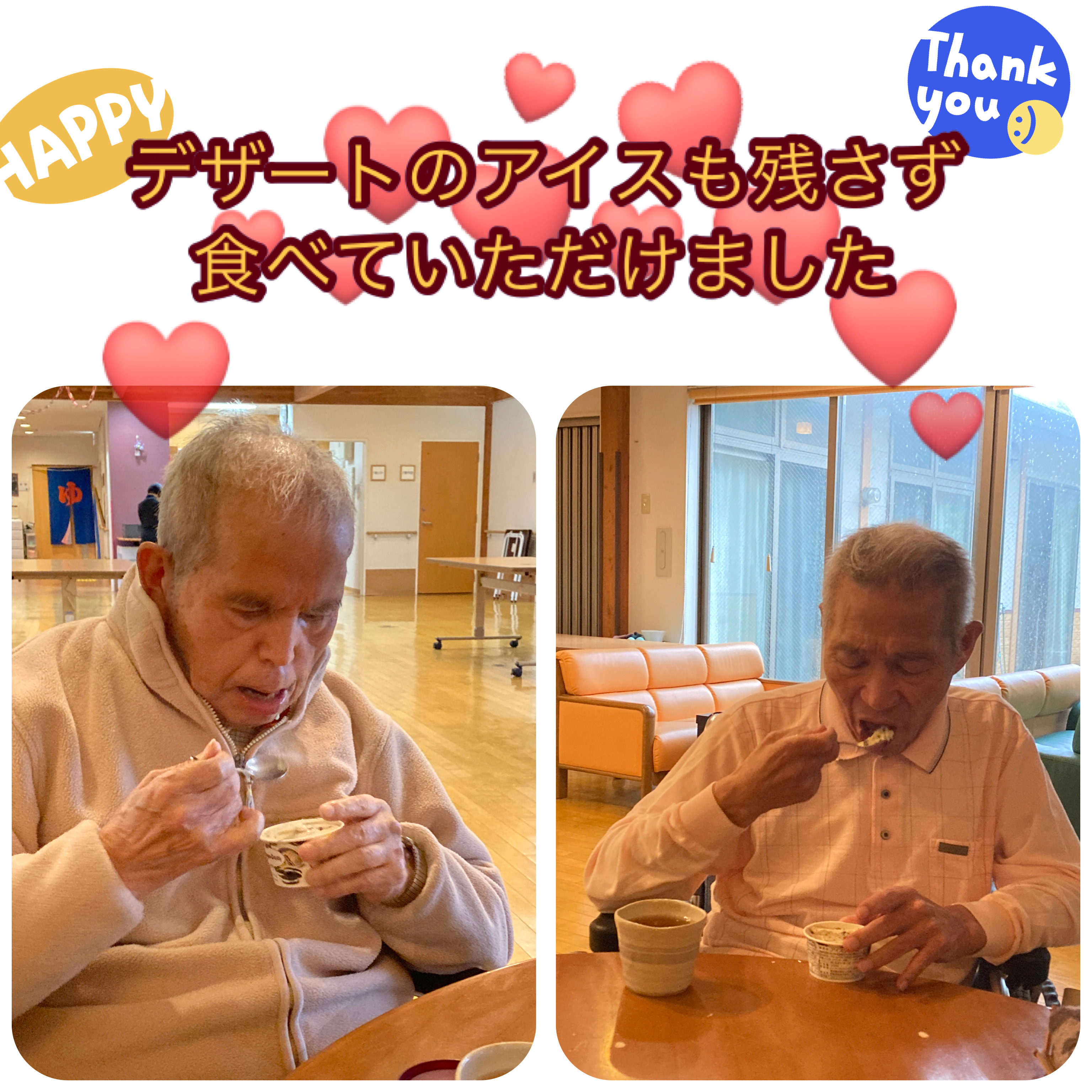 こんにちは。うめ・さくらユニットで、3月がお誕生月の利用者様の、お祝いの食事会を催しました。