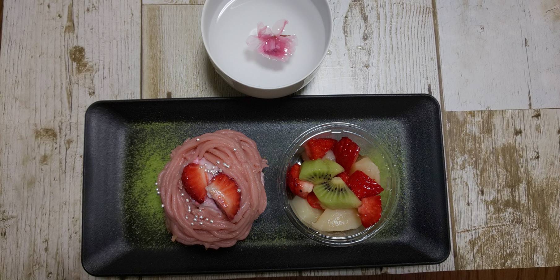 桜モンブランと桜茶でおもてなしさせていただきました。
