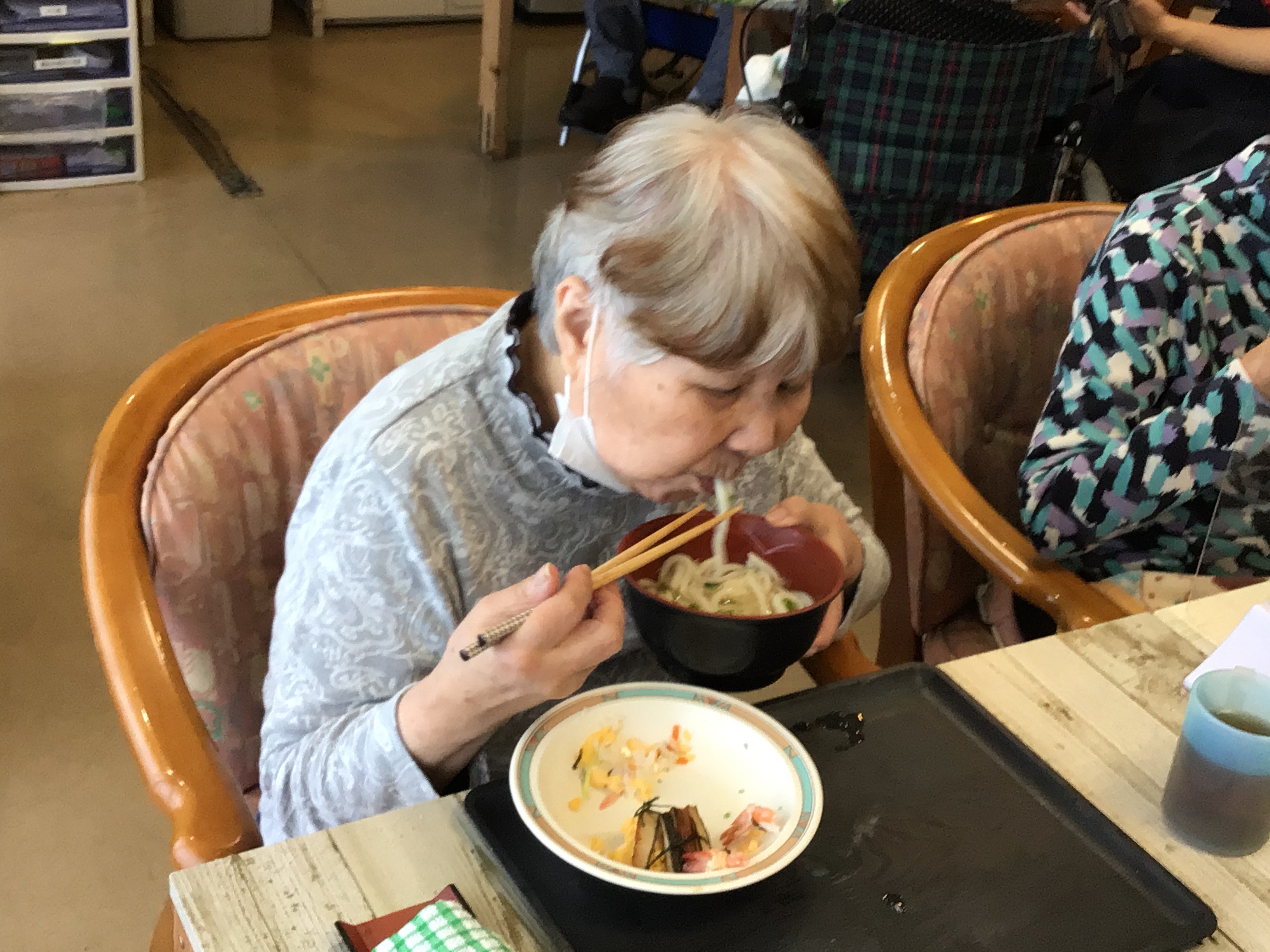 初めての試みでご利用者に温かいうどんか冷やしうどんを