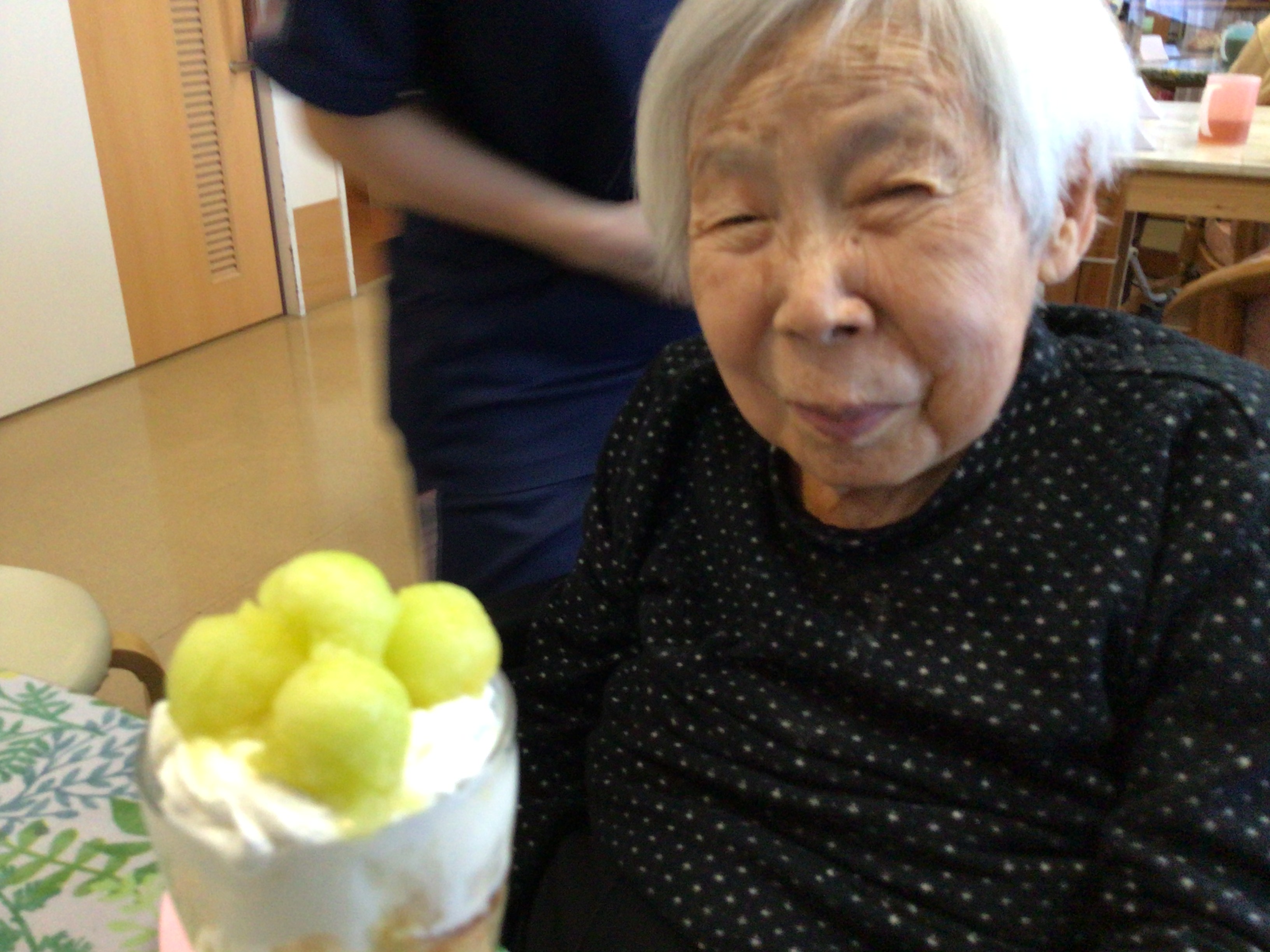 今回はメロンパフェを提供しました!フルーツが好きなご利用者がほとんどなので