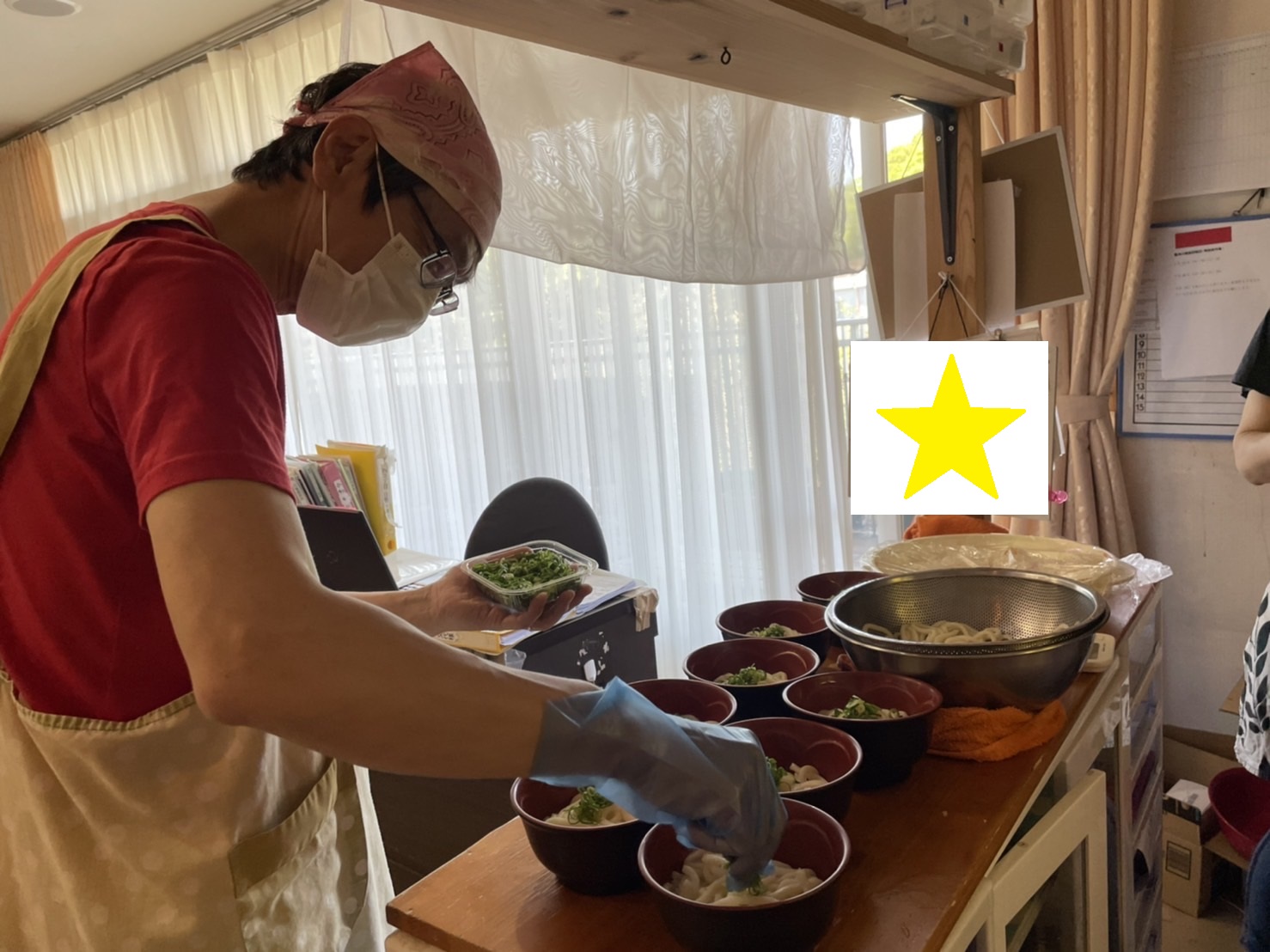 どちらがいいか選択制にして直前に聞きました!少し肌寒かったので皆さん温かいうどんを選ばれる方が多く