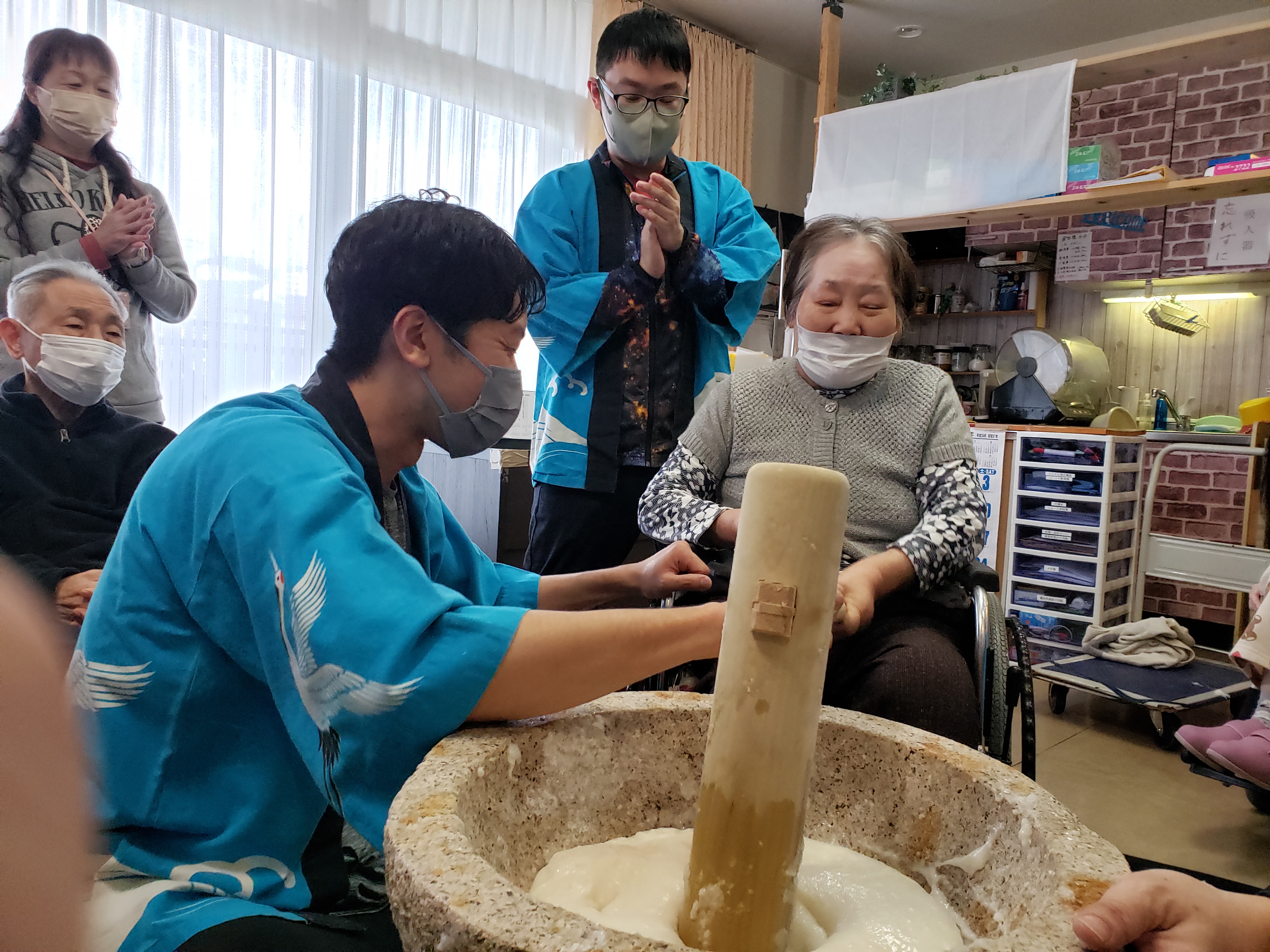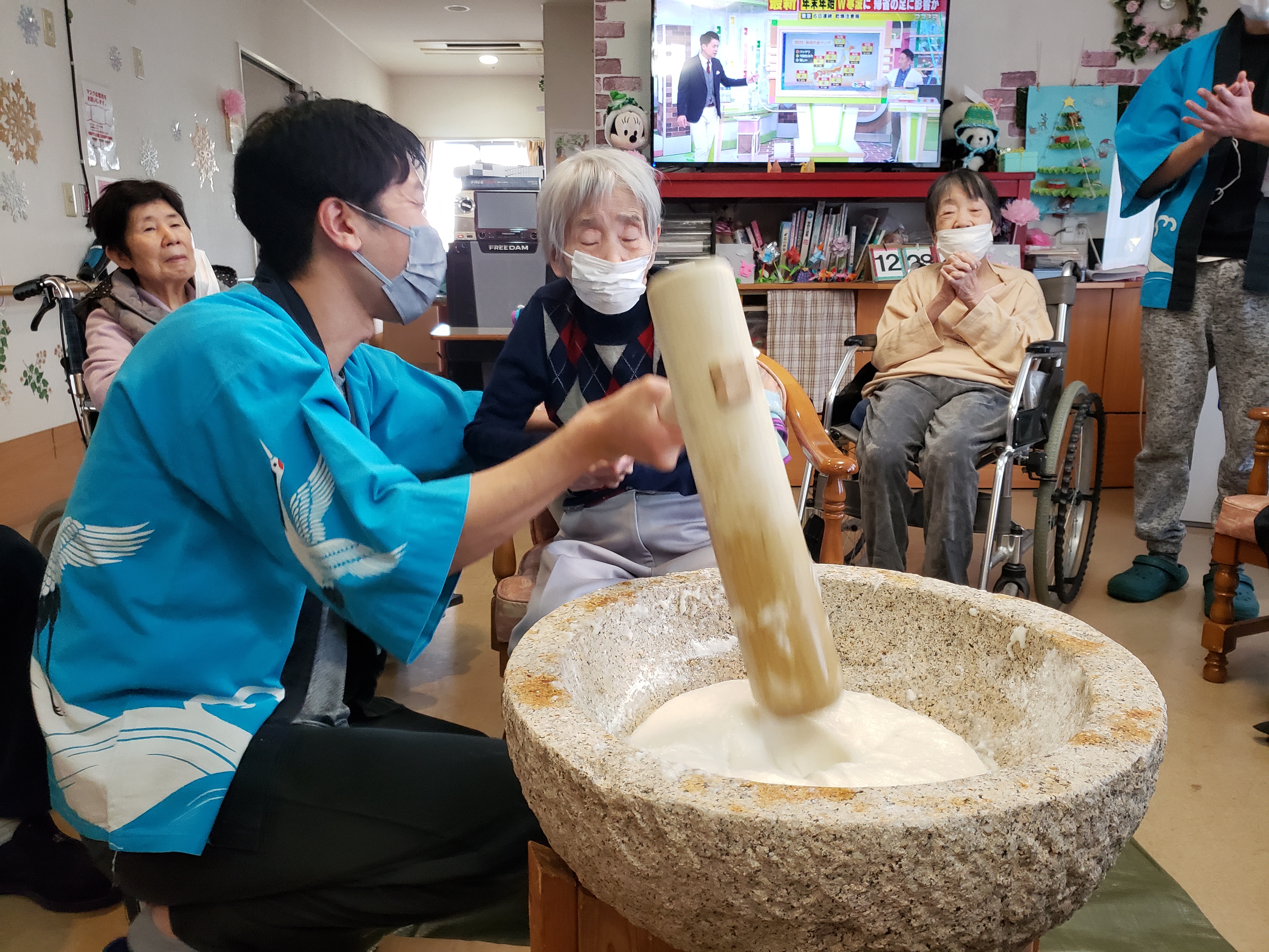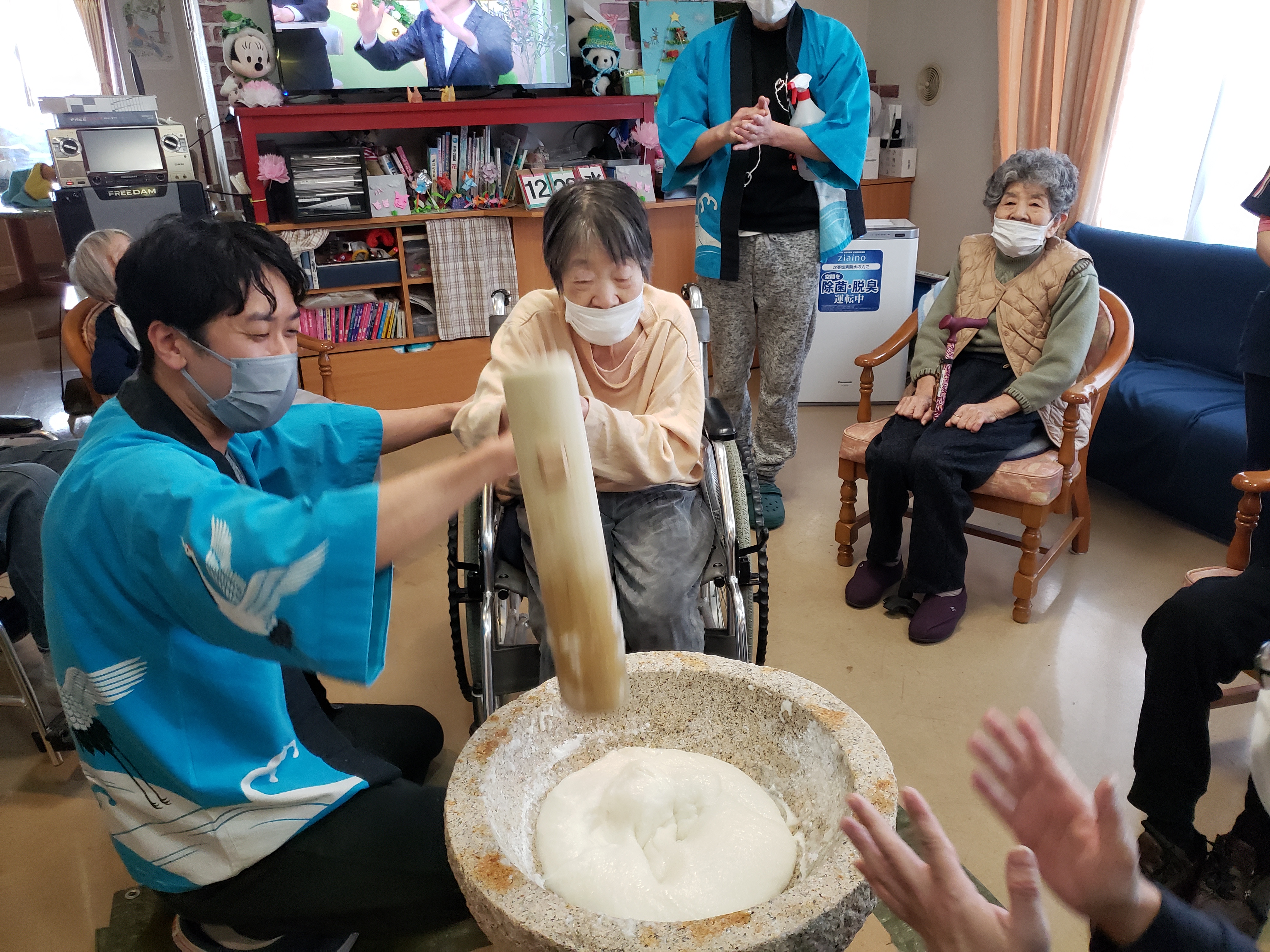 12/28(水)に、清滝らくらく苑では毎年恒例の餅つき行事を実施しました(^^)