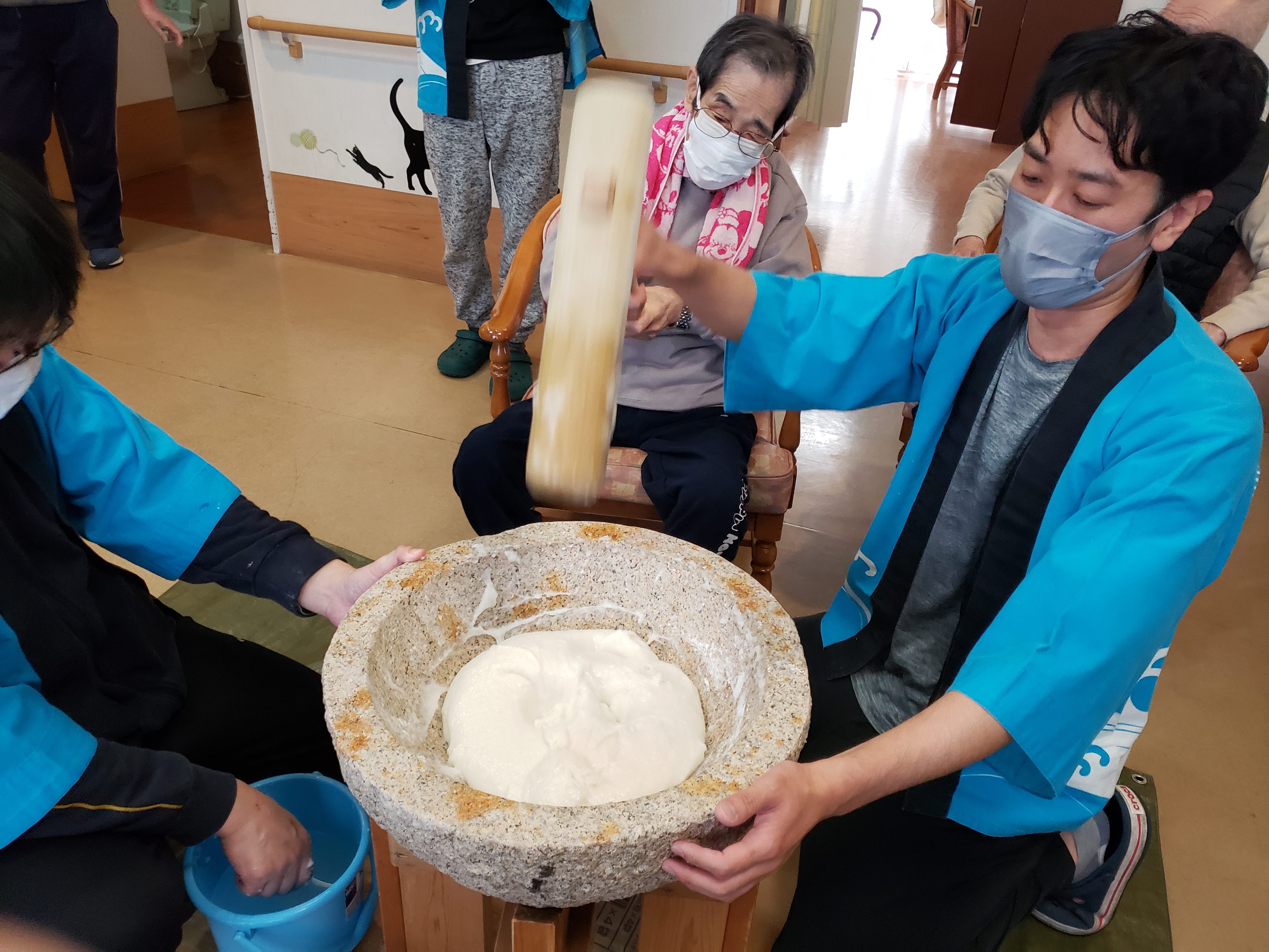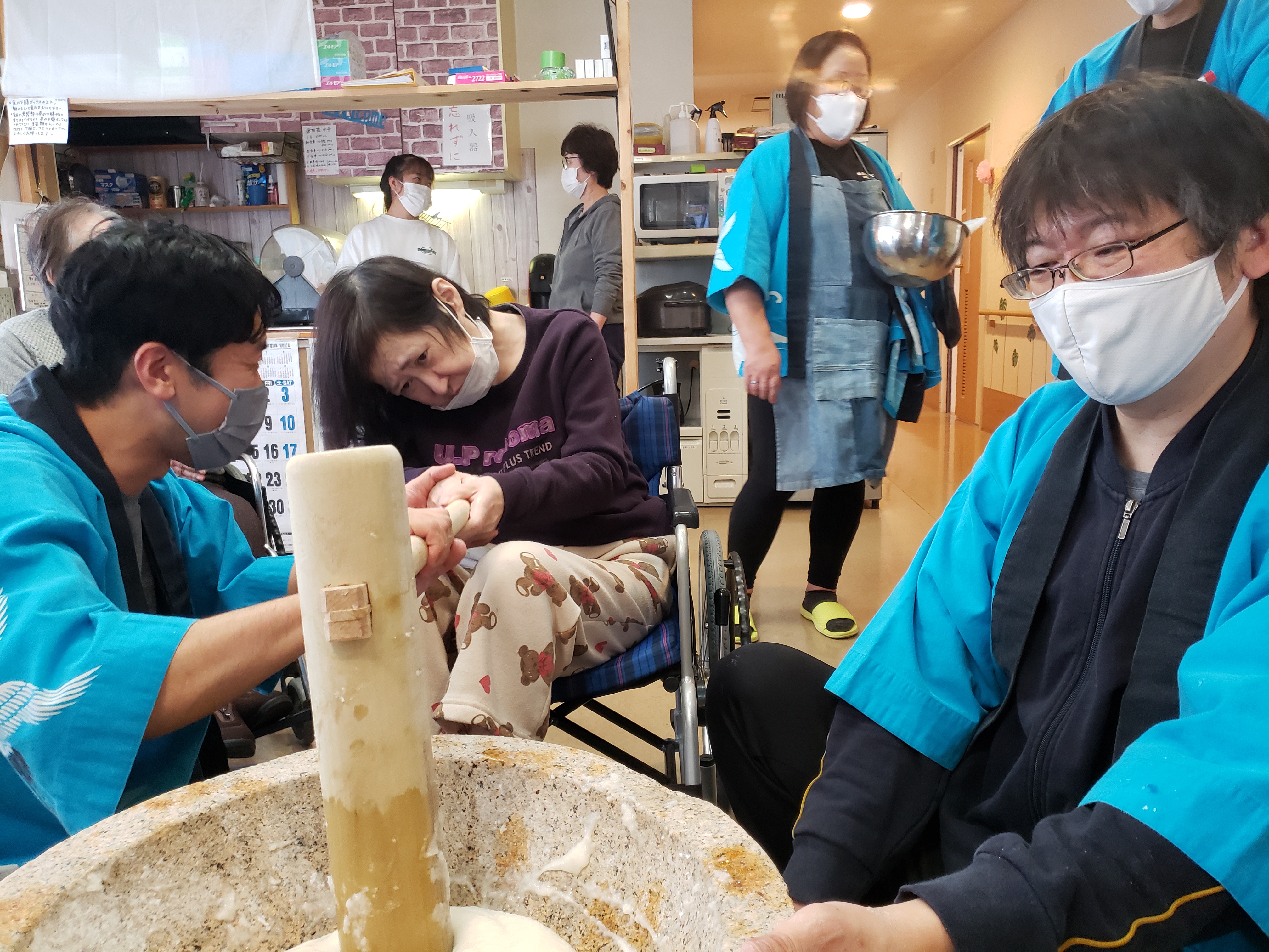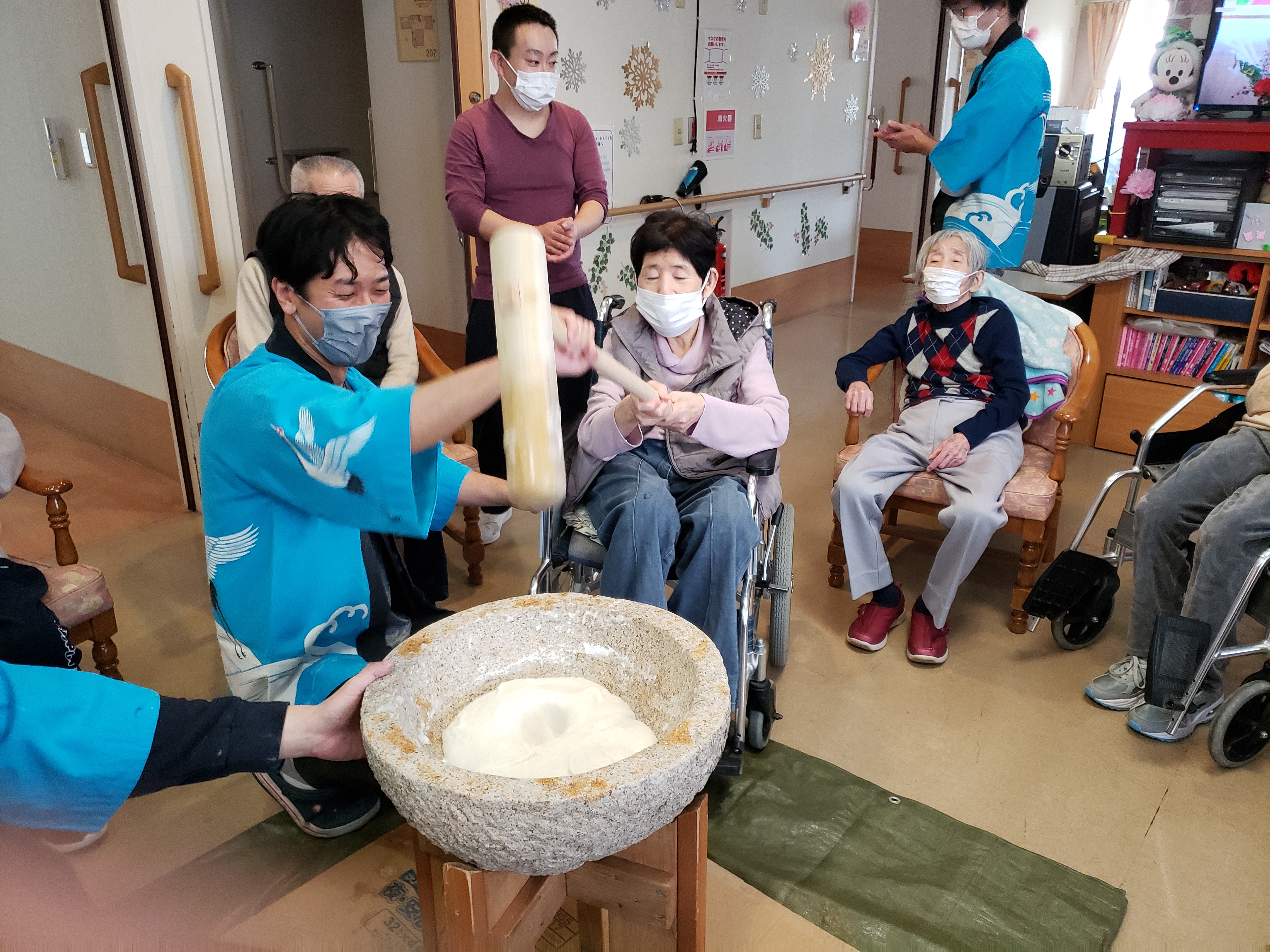 12/28(水)に、清滝らくらく苑では毎年恒例の餅つき行事を実施しました(^^)
