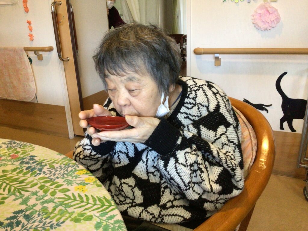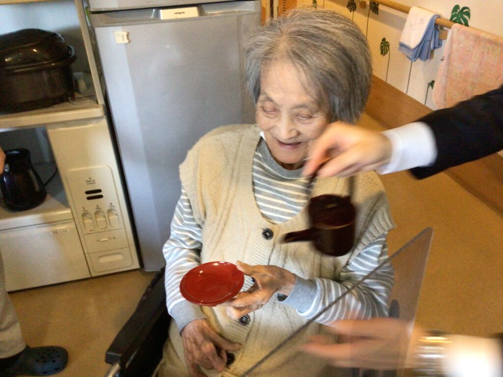 お神酒を飲んで頂いたり、書初めを楽しんで頂いてます☻