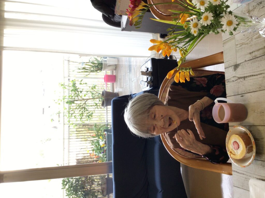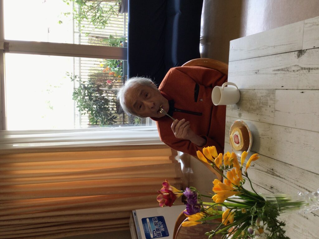 おやつにはロールケーキを召し上がって頂き、皆さん笑顔いっぱいで楽しんで頂けてます(^^♪