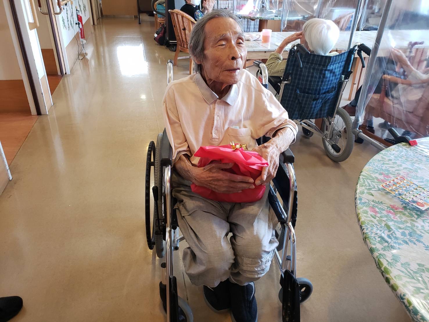 西2丁目で敬老会を開催しました。当日のSS利用者の皆様と一緒に敬老のお祝いを行い、ビンゴゲームを開催しお祝いの品を贈呈しました。皆様、敬老の日おめでとうございます。